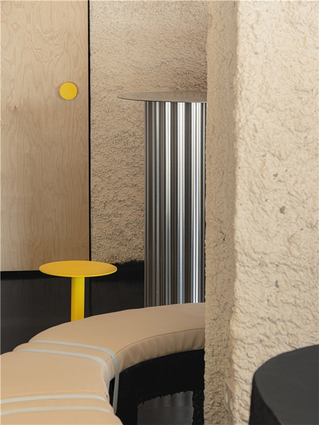 El proyecto se organiza, por tanto, a partir de esa fricción controlada. No es una narrativa lineal, sino un montaje: el visitante atraviesa una primera capa que conserva algo de la calle y del recorrido, y se adentra progresivamente en otra que condensa calma y cuidado. La transición entre ambos mundos no se resuelve con un cambio temático, sino con una modificación gradual de densidad, de temperatura material y de acústica: de lo duro a lo blando, de lo expuesto a lo recogido.
