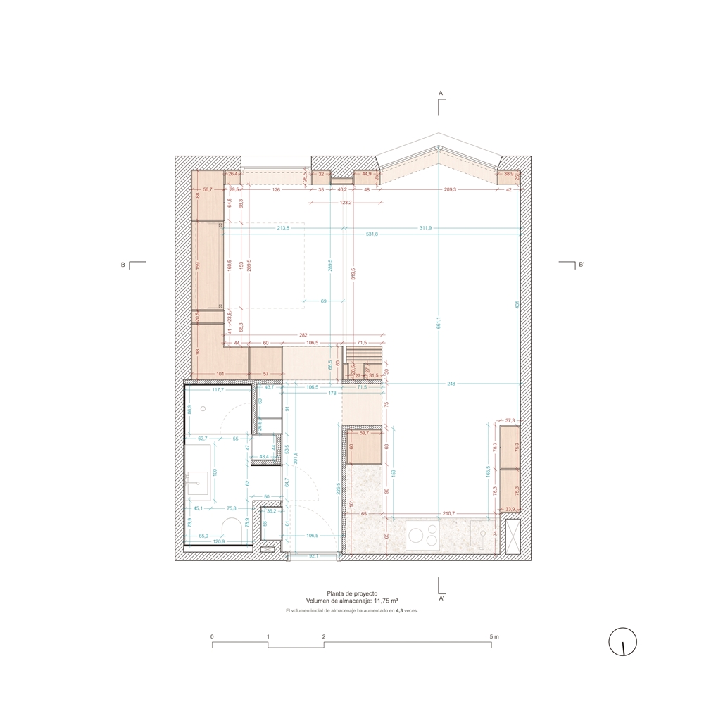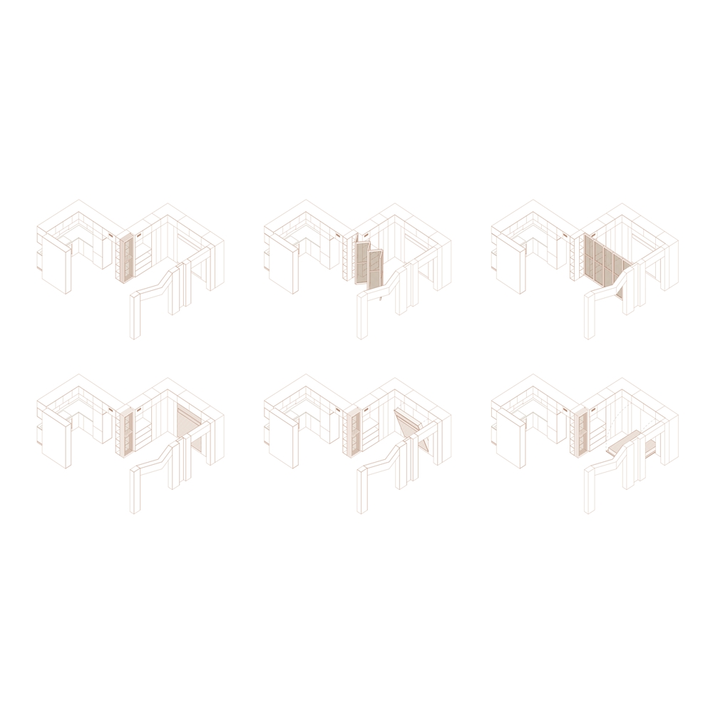 El principal requerimiento para esta reforma era poder resolver una alta demanda de espacio de almacenaje en una superficie de vivienda muy reducida. Para ello, nos valimos del principio tipológico del “Gabinete de Curiosidades” o “Cuarto de Maravillas”: una tipología de habitación privada que alcanzó notoriedad en Europa durante los siglos XVI-XVIII, resuelta a partir de un mueble de madera capaz de exhibir o esconder una serie de objetos colectados a lo largo de la vida; diversos fragmentos representativos de una historia particular que, expuestos u ocultos, establecían un modelo de organización del espacio.