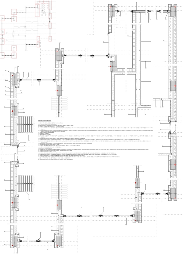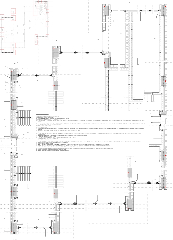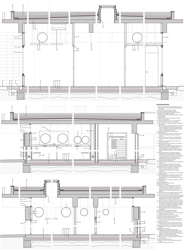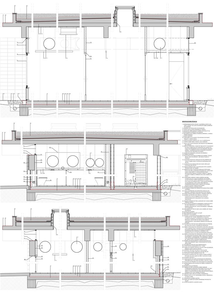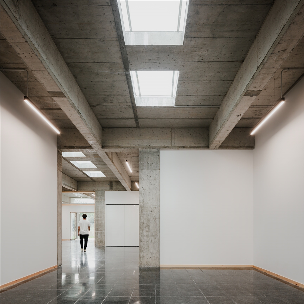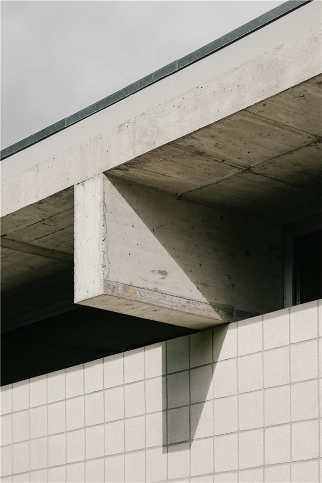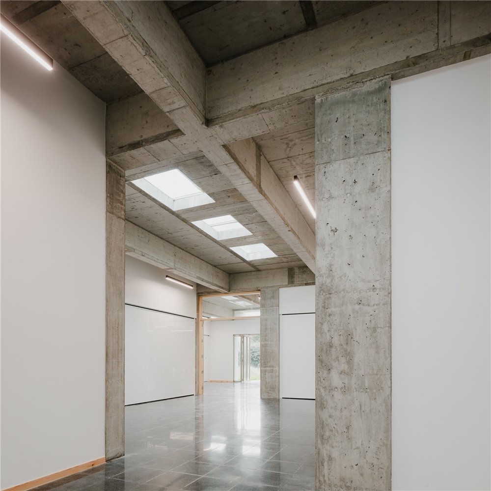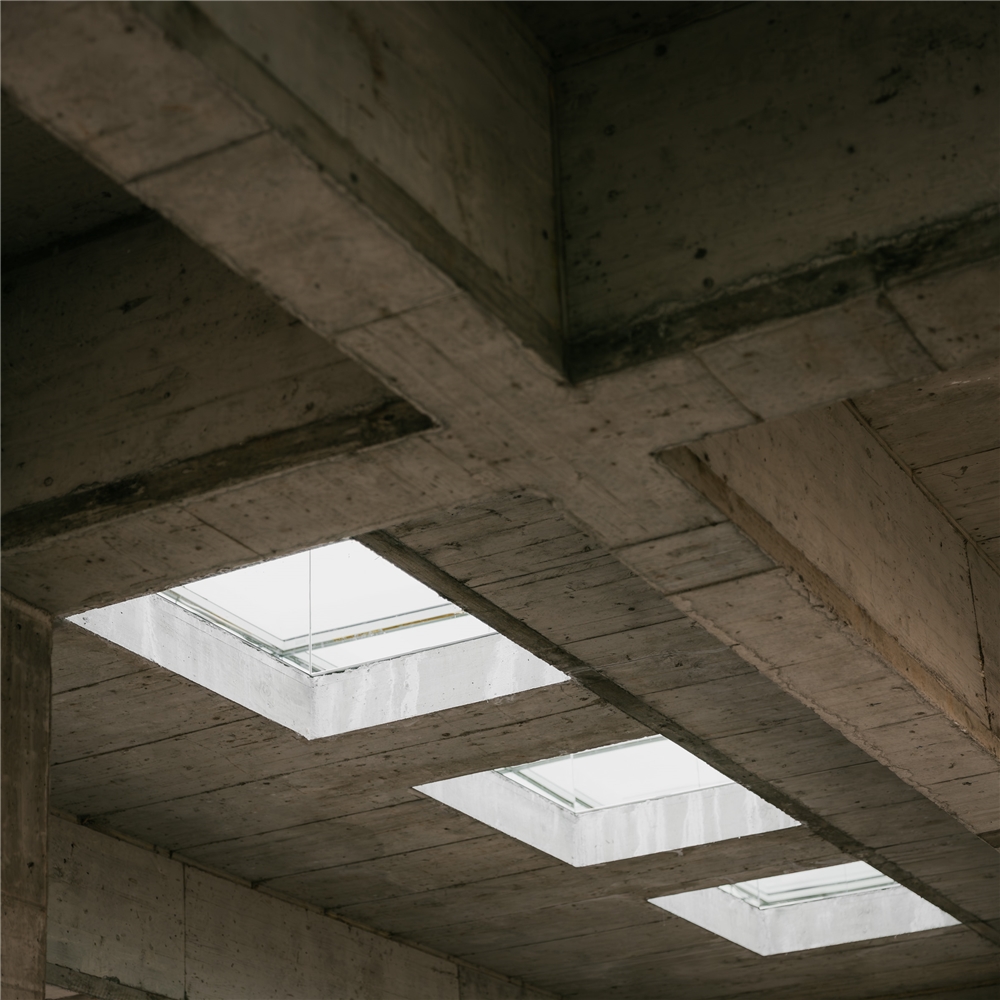 La cubierta plana, perforada por lucernarios, introduce una luz cenital homogénea que modela el espacio a lo largo del día, generando una atmósfera cambiante pero serena. La estructura de hormigón armado aporta inercia, robustez y permanencia, expresadas mediante una materialidad honesta y funcional, ajustada al uso intensivo propio de un equipamiento educativo. Cada decisión constructiva responde a criterios de durabilidad, eficiencia y claridad formal, evitando soluciones superfluas.