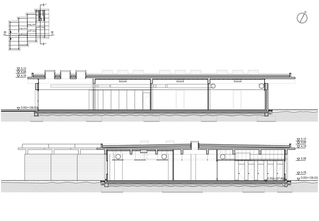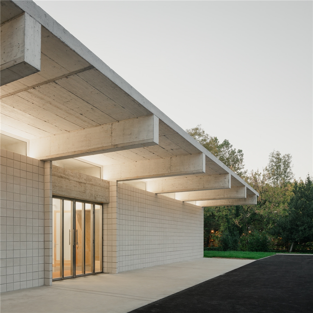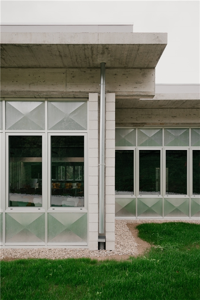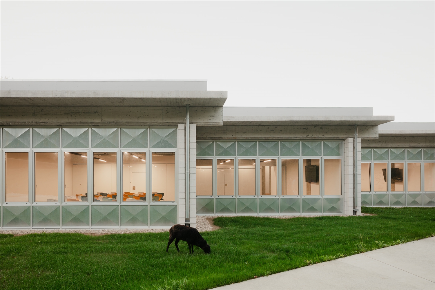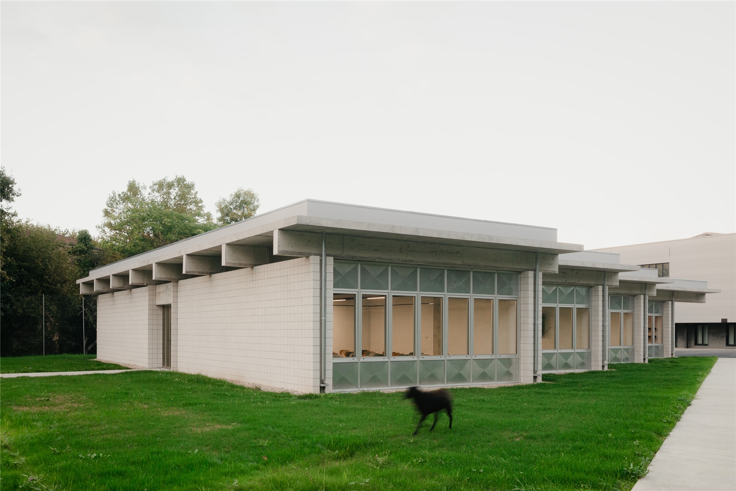 La intervención responde a la falta de superficie mediante un volumen exento de una sola planta, de escala contenida y proporción equilibrada. Se distancia del edificio existente para establecer con él un diálogo respetuoso, evitando gestos dominantes o competitivos. Su perfil bajo —5,24 metros de altura— preserva la continuidad visual del paisaje y mantiene el cielo como presencia constante en la experiencia cotidiana del centro.