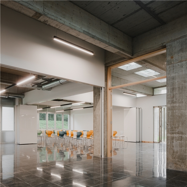 Situado en el corazón de Durangaldea, a orillas del río Mañaria y en el límite entre lo urbano y lo rural, el proyecto promovido por Durangaldeko Ibaizabal Kooperatiba Elkartea nace de un proceso profundo de reflexión y participación que implicó a trabajadores, directiva, profesorado y alumnado. De ese diálogo colectivo emergió una necesidad compartida: dotar al centro educativo de un nuevo espacio capaz de acompañar su crecimiento, reforzar su identidad y consolidar un lugar de encuentro, aprendizaje y convivencia.