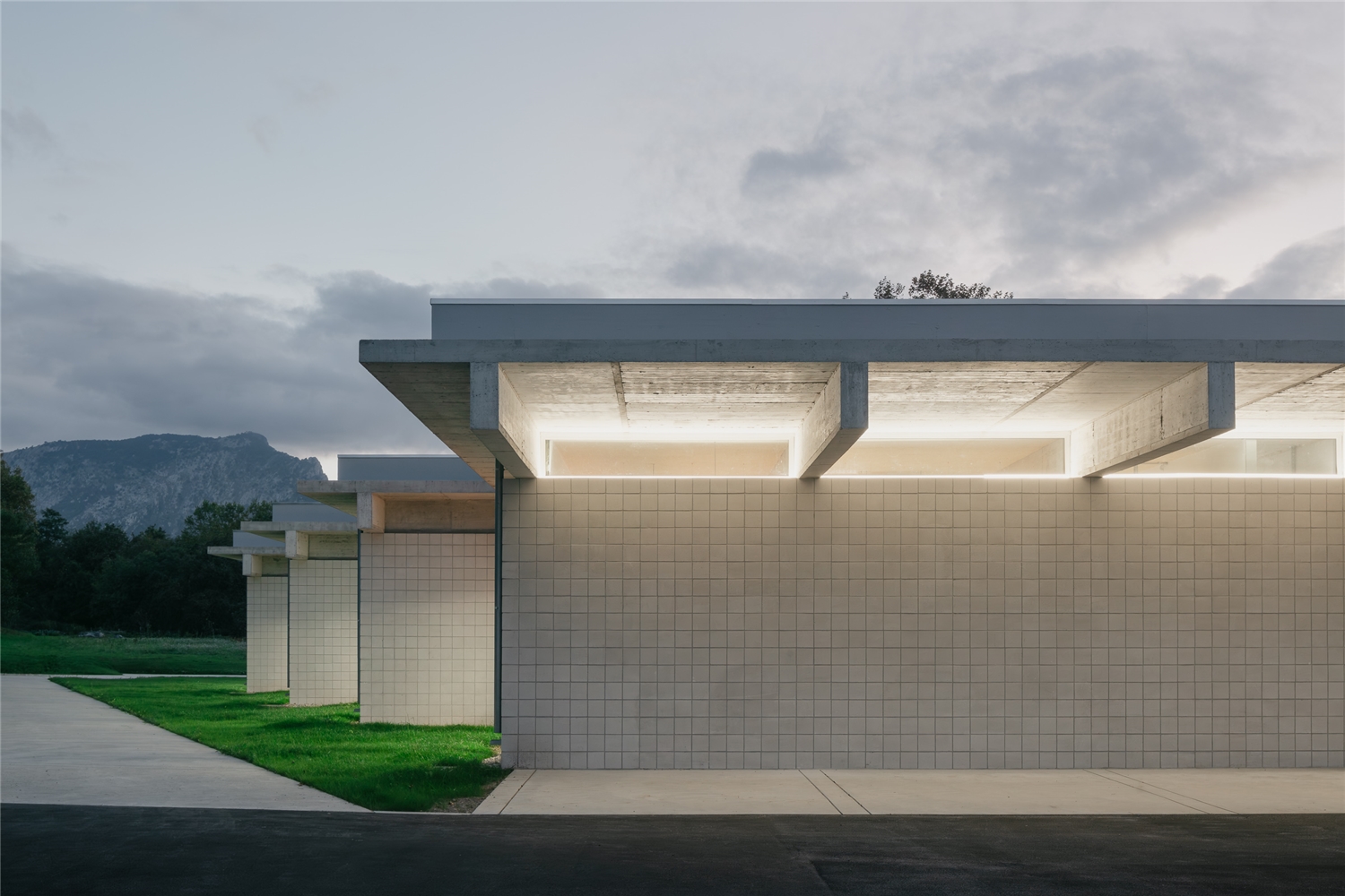 En su relación con el territorio, el proyecto asume la condición fronteriza como una oportunidad proyectual. No se concibe como un objeto autónomo, sino como una pieza de mediación entre paisaje y ciudad, entre infraestructura educativa y geografía productiva. La implantación paralela al edificio existente, la adaptación a la topografía y la sobriedad material refuerzan el carácter abierto del valle, entendiendo el territorio no solo como soporte físico, sino como una red activa de relaciones ambientales, sociales y culturales que la arquitectura puede articular y visibilizar.