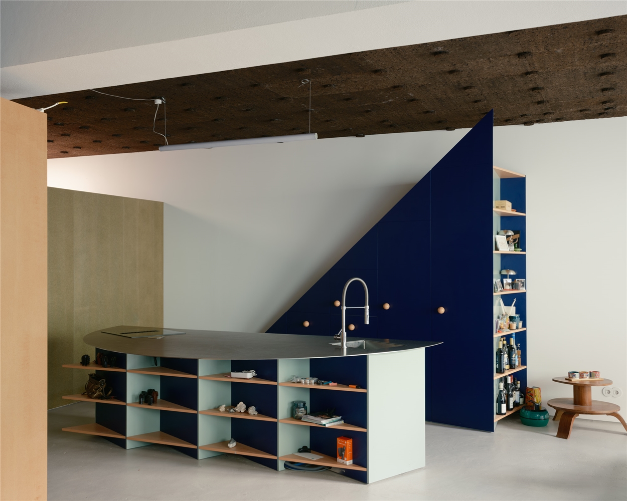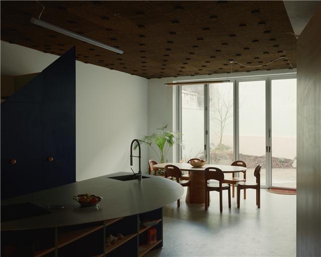 Más allá de su utilidad práctica, el diseño de estos compartimentos para dormir como piezas de mobiliario y no como habitaciones sugiere que será a través de un proceso de apropiación - mediante objetos recopilados con el tiempo - como este campo abierto se transformará en un hogar. Prueba de ese movimiento, sobre el cual no creemos que, como arquitectos, debamos tener un control absoluto, es la nueva cocina diseñada por fala atelier e introducida en este garaje como una especie de primer ready-made.
