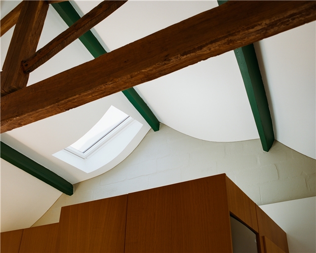 Se trata de una pequeña casa que se siente más grande de lo que es, y que, sin embargo, no carece de nada esencial para la vida doméstica de sus habitantes. Desde esta perspectiva, es una casa como todas las casas deberían ser. A través de un recorrido tipológico, llegamos a un diseño que reconstruye la casa muy “tal como se encontró” - aunque invertida. Los dormitorios se sitúan abajo, entre la calle y un patio tranquilo, cada uno con su propio grado de privacidad. El vestíbulo de entrada, con su geometría excéntrica, ofrece una accesibilidad sorprendente y una generosidad poco común para una vivienda de esta dimensión. El espacio principal ocupa toda la planta superior, bajo la cubierta inclinada existente. Aquí, la casa se abre hacia sus mejores vistas, potencia la ventilación cruzada y disfruta de una mayor altura libre, celebrada por catenarias de cartón-yeso moldeadas in situ - moldeadas por las manos de los trabajadores.