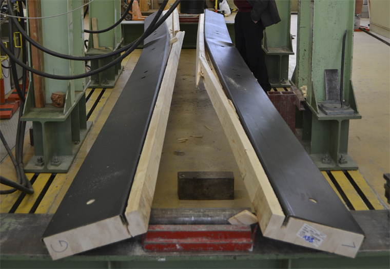 In this work a new generation of timber-steel hybrid beams is proposed and developed. This was the first step for further work on timber-steel structural systems at the Vienna University of Technology. Hybrid beams, ribbed decks and semi-rigid joints were proposed, developed and tested under both short-term and long-term loads. Fire tests were also carried out.