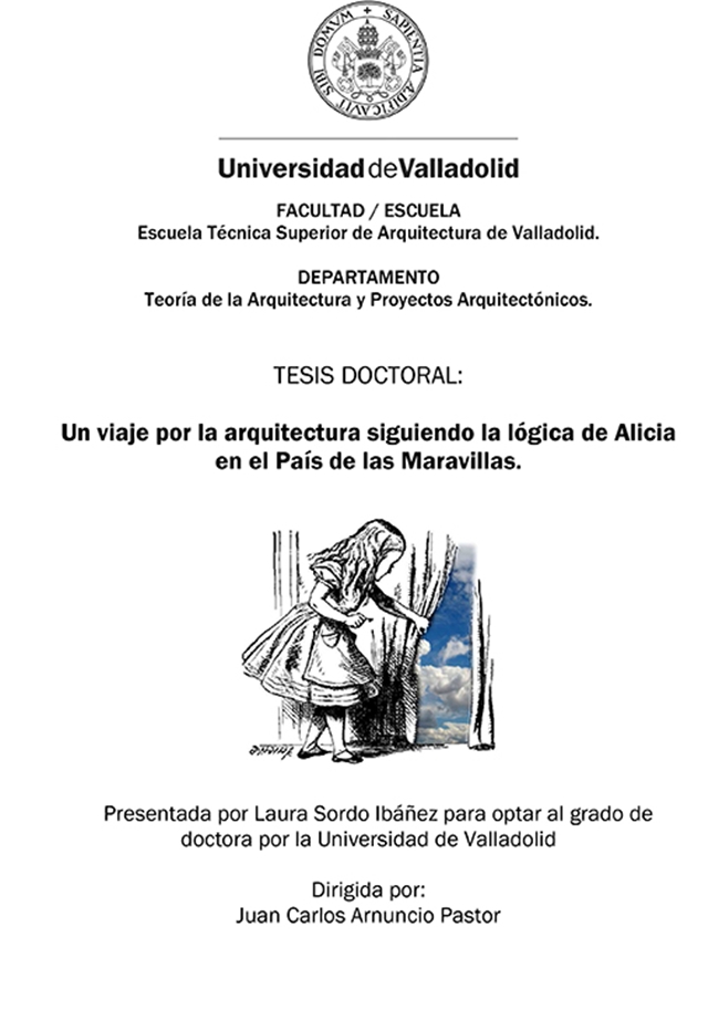 La Tesis Doctoral “Un viaje por la arquitectura siguiendo la lógica de Alicia en el País de las Maravillas” establece una reflexión arquitectónica acerca de cómo la reducción al absurdo puede ser un mecanismo generador del proyecto arquitectónico. Se trata de desvelar las razones por las que algunas arquitecturas pueden reconstruir el mismo argumento de Alicia en el País de las Maravillas.