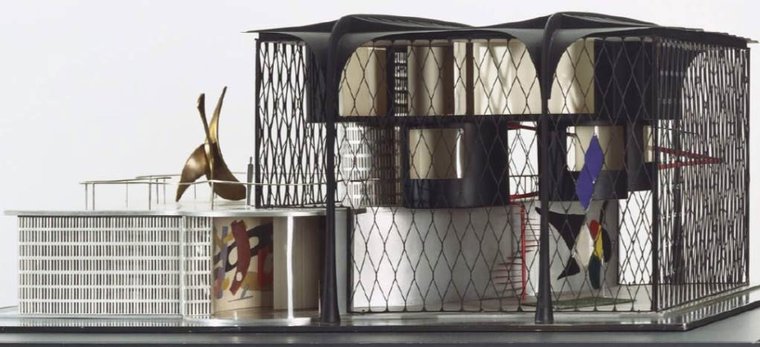 The models containing works by Fernand Léger, Joan Miró, Alexander Calder and Jean Arp, they were used to spread his research and to test spatial, constructive and artistic effects. In the Suspended House, open solutions were designed and later they were transplanted to the rest of his work, and specially in his hospitals. His intention was to free men of any functional programme imposed by Architecture, not by the dissolution of his Architecture itself but by materializing individual interior spaces, that would make it a more intimate place for men.