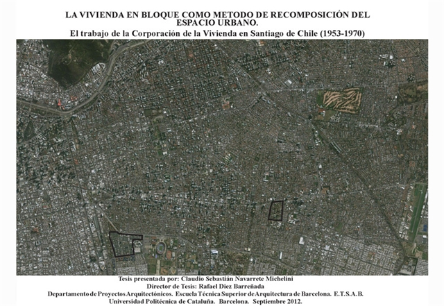 That’s the historical and political framework where this thesis is situated to expose part of the housing production managed by CORVI, where two strategies of urban intervention stand out: the first, under the concept of Unidad Vecinal (Neighborhood Unit), which tackles large urban gaps, mainly the limits of the city, made since 1953 to 1968; and the second, called Remodelación (Remodelation), which corresponds to interventions implemented from 1964 until mid-70s, that sought to regenerate deteriorated urban fabric located near the city downtown areas.