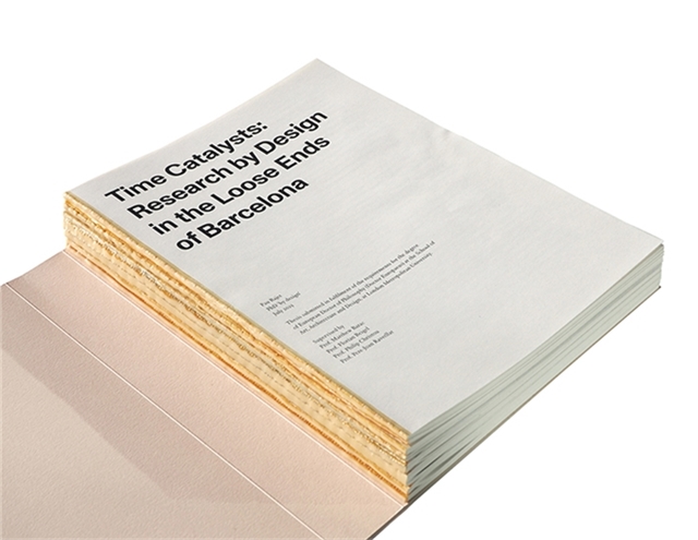 Behind the hill of Montjuïc, in a former agricultural terrain of decayed industrial developments near the sea, specific places are approached at different scales—city edge, urban fabric, and room ensemble—providing a context for design speculation in a two-step research process. Firstly, design appears as an interpretive method for defining subjective contexts, identified as found-time catalysts, by means of unveiling fragmentary situations with the potential of stimulating upcoming change. In a second step, design provides a vehicle for speculation. The design research process launches and tests the potential of time in a constellation of projects that both enhance previously found situations and creatively release new-time catalysts in fresh forms.