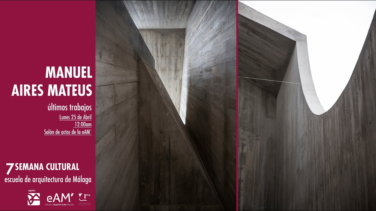 Conferencia del arquitecto portugués Manuel Rocha de Aires Mateus celebrada el 25 de abril de 2016 en la Escuela Técnica Superior de Arquitectura de la Universidad de Málaga, dentro de la 7ª Semana Cultural de la eAM'