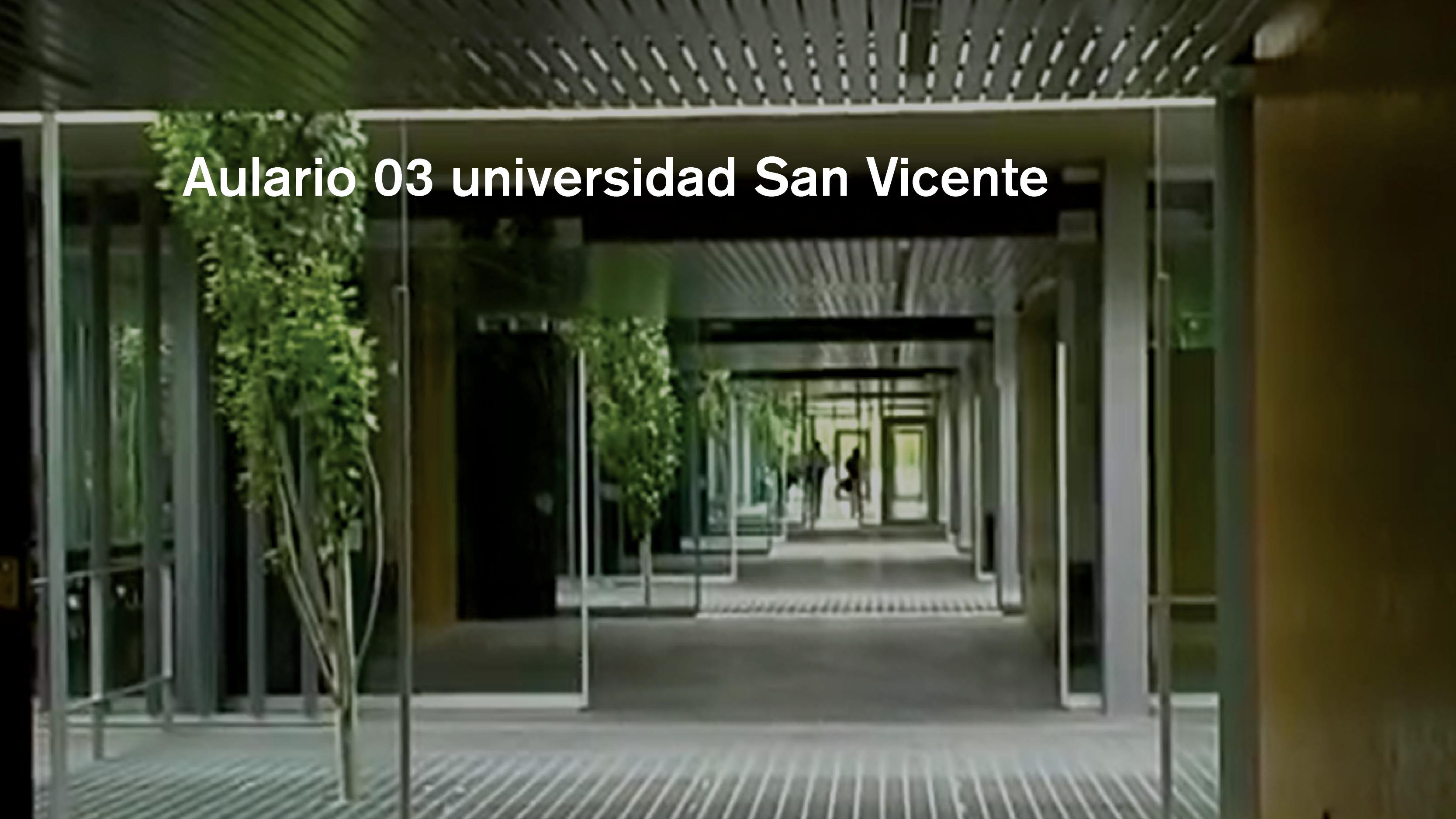 El aulario 03 de la Universidad de San Vicente, concebida por Javier García-Solera Vera, se encuentra en la zona más marginada del campus, en un lugar originalmente concebido para albergar almacenes. Para este edificio de carácter urgente, el arquitecto construye una arboleda en la que va insertando pabellones, creando en el interior una zona de continuidad espacial.