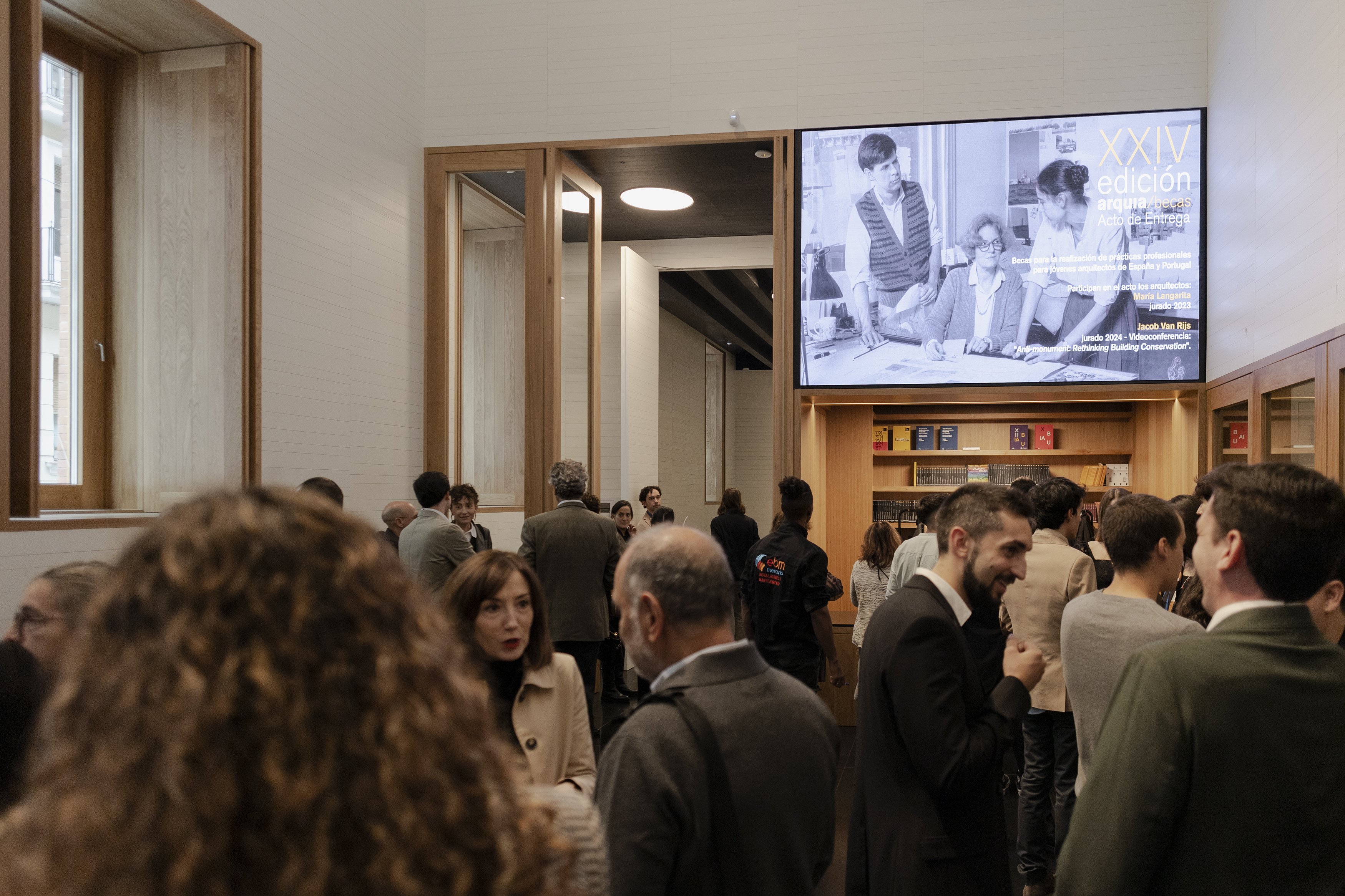 Durante el evento, la arquitecta María Langarita, mención especial al arquitecto emergente del Premio de Arquitectura Contemporánea de la Unión Europea Mies van der Rohe en 2013, impartió la conferencia 'Ser Parte', mientras Jacob Van Rijs, jurado de la próxima edición, anunció la temática de las becas para 2024: 'Anti-monument: Rethinking Building Conservation'.