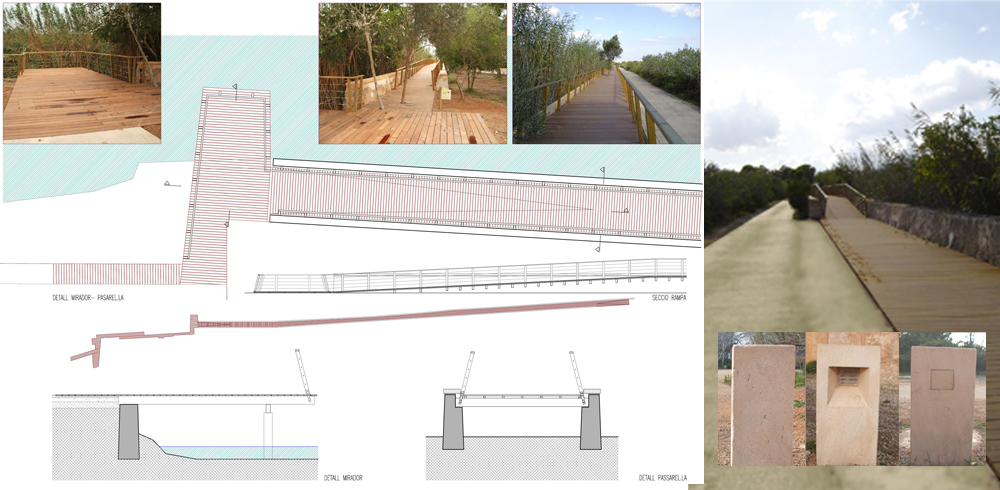 1. RECORRIDO DEL MIRADOR EXISTENTE HASTA EL CENTRO DE RECEPCIÓN: CREACIÓN DE UNA PASARELA DE MADERA APOYADA EN LOS MUROS DEL CANAL DE RIEGO,JUNTAMENTE A UN PEQUEÑO MIRADOR SITUADO ENCIMA DE UNO DE LOS CANALES  E INCORPORADO AL RECORRIDO PEATONAL.