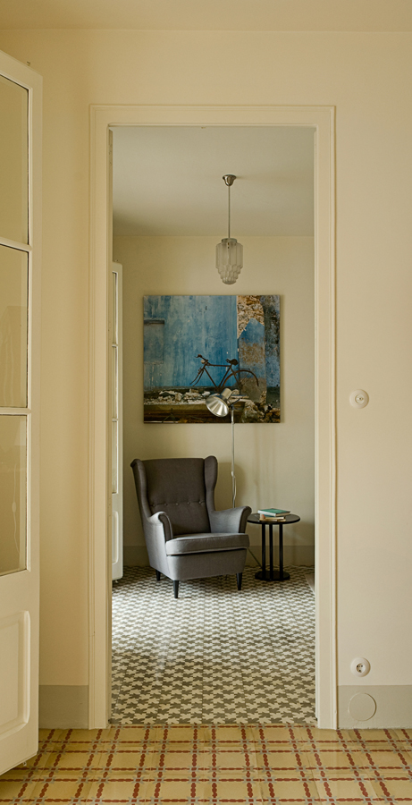 Reparar una casa para entrar a vivir. Cuatro piezas de tamaño similar, techos altos, pavimento de mosaico hidráulico, galería soleada, terraza y porche, patio con palmera. Un pisito deshabitado, poco modificado desde que el arquitecto racionalista Bartomeu Agustí lo construyó en el año 1936.