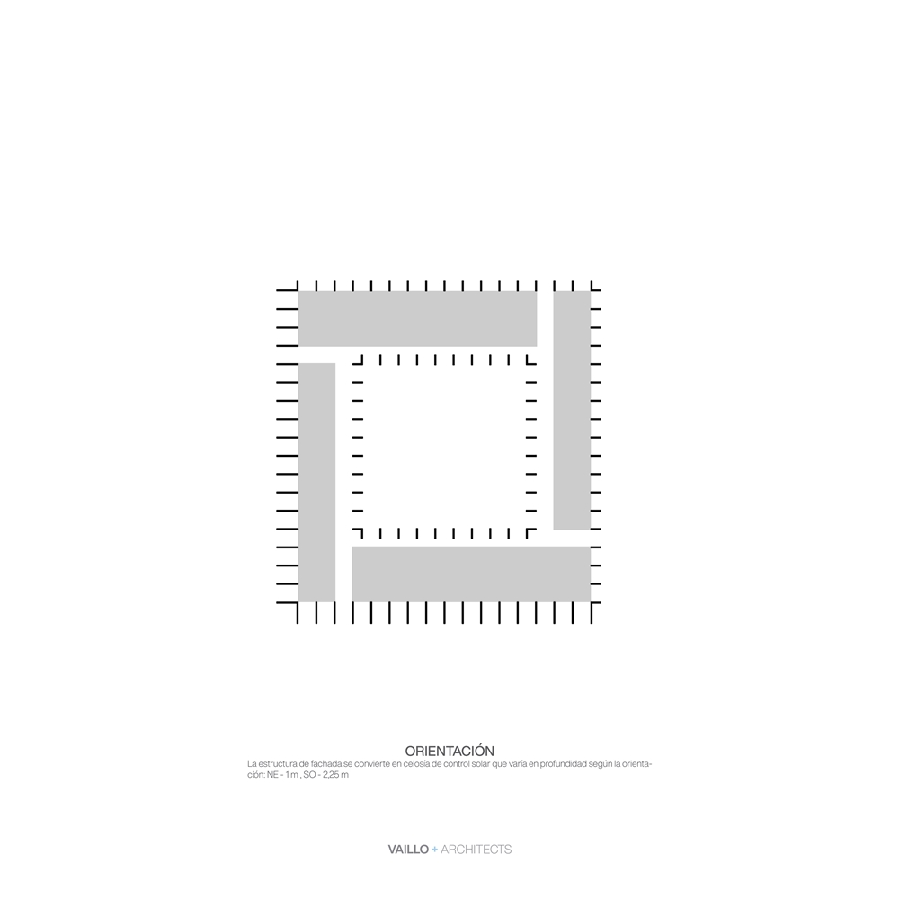 El diseño de estructura en el perímetro busca la máxima flexibilidad interior, mediante la utilización de pantallas de diferentes profundidades y vigas de gran canto absorbiendo grandes luces, permitiendo múltiples distribuciones interiores capaces de absorber diferentes usos y programas.