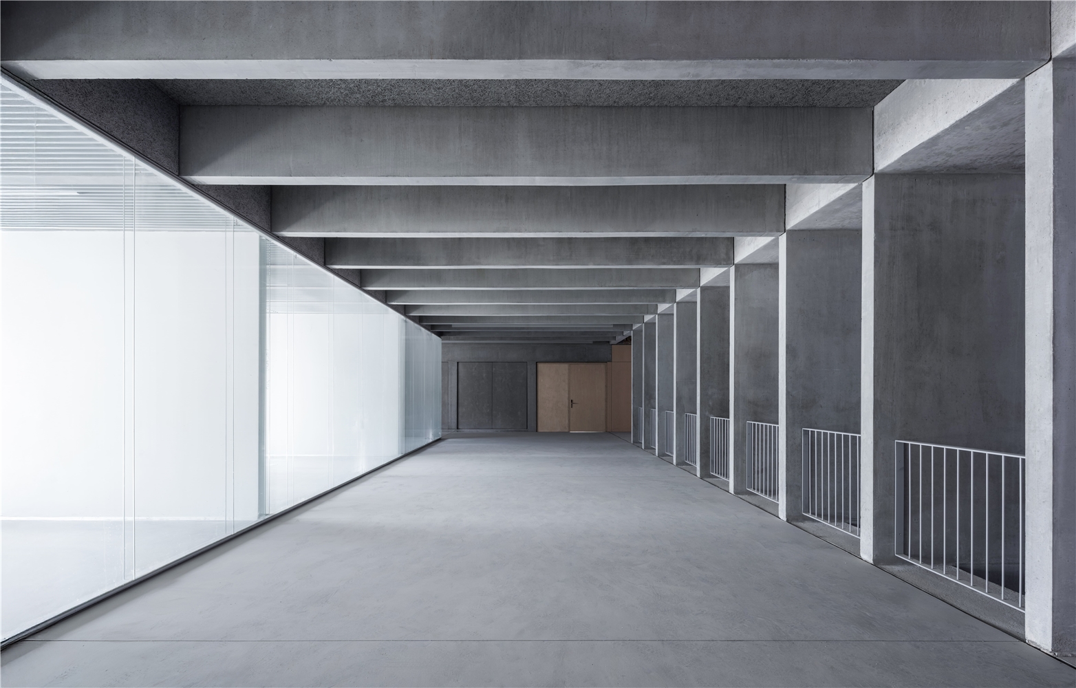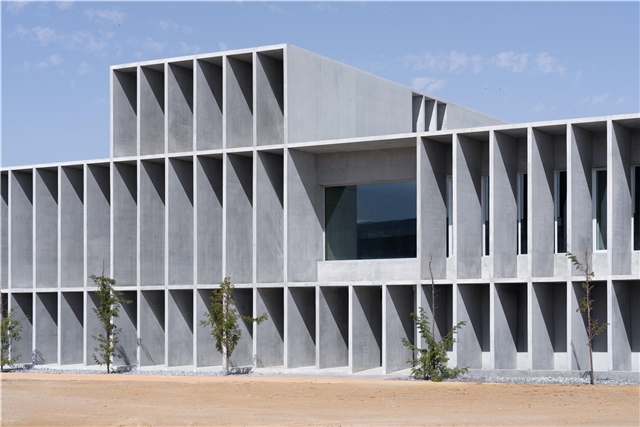 La imagen del edificio se conforma mediante una estructura vista de hormigón in situ, interior y exterior, de secciones muy esbeltas -15 cm. de espesor-.