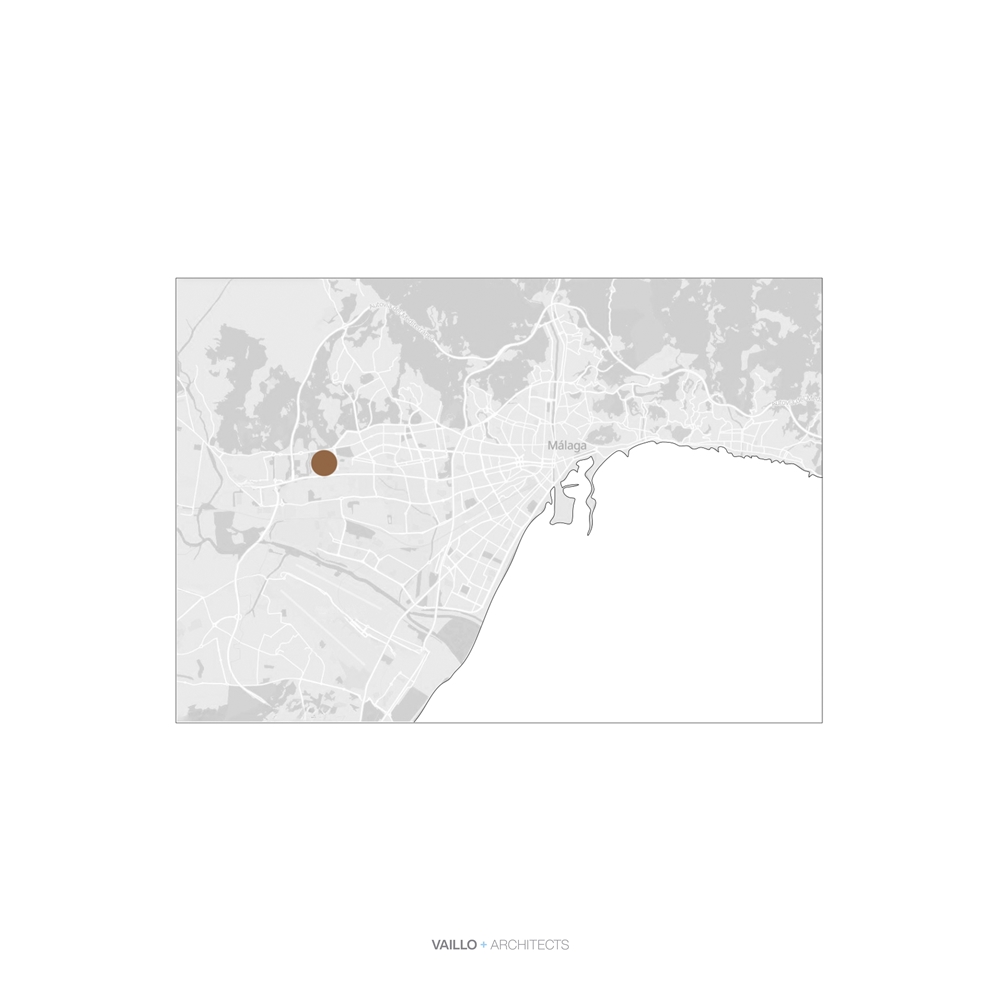 El conjunto se ve afectado por la restrictiva servidumbre aérea que establece una edificación de escasa altura. Ello implica una gran ocupación en planta y una adaptación a la topografía en suave pendiente.