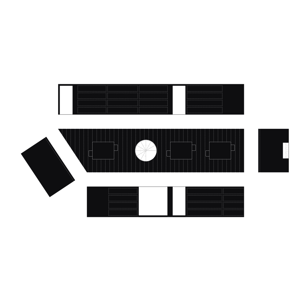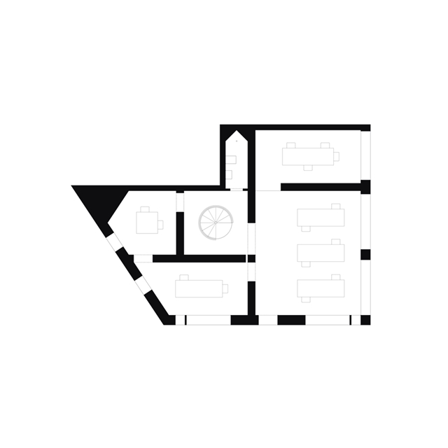 La intervención parte de una estrategia basada en la flexibilidad. Frente a la rigidez de un único gran espacio diáfano, se plantea una organización mediante una sucesión de habitaciones interconectadas capaces de albergar distintas dinámicas. Cada una se configura y dimensiona según su grado de privacidad – desde ámbitos públicos y de encuentro, hasta zonas más íntimas, de concentración y recogimiento – generando un gradiente de usos que permite al espacio adaptarse a diferentes modos de trabajar, relacionarse o descansar.