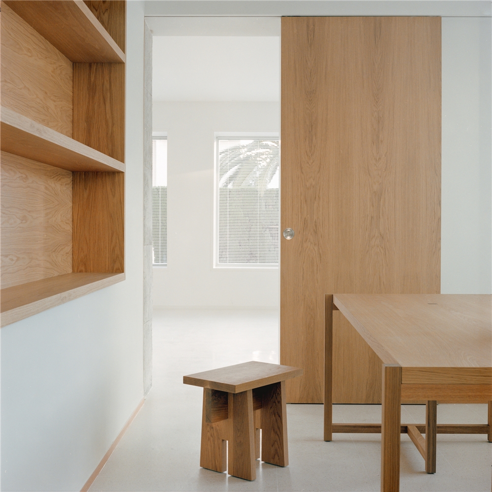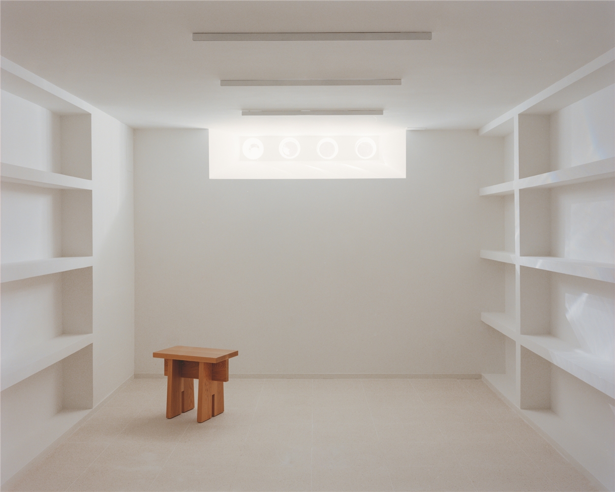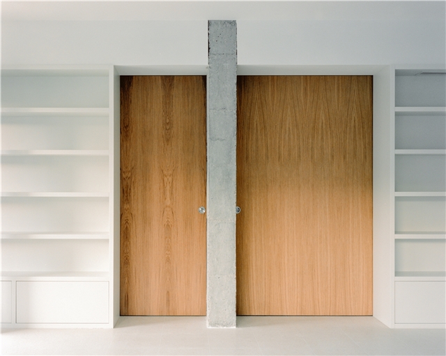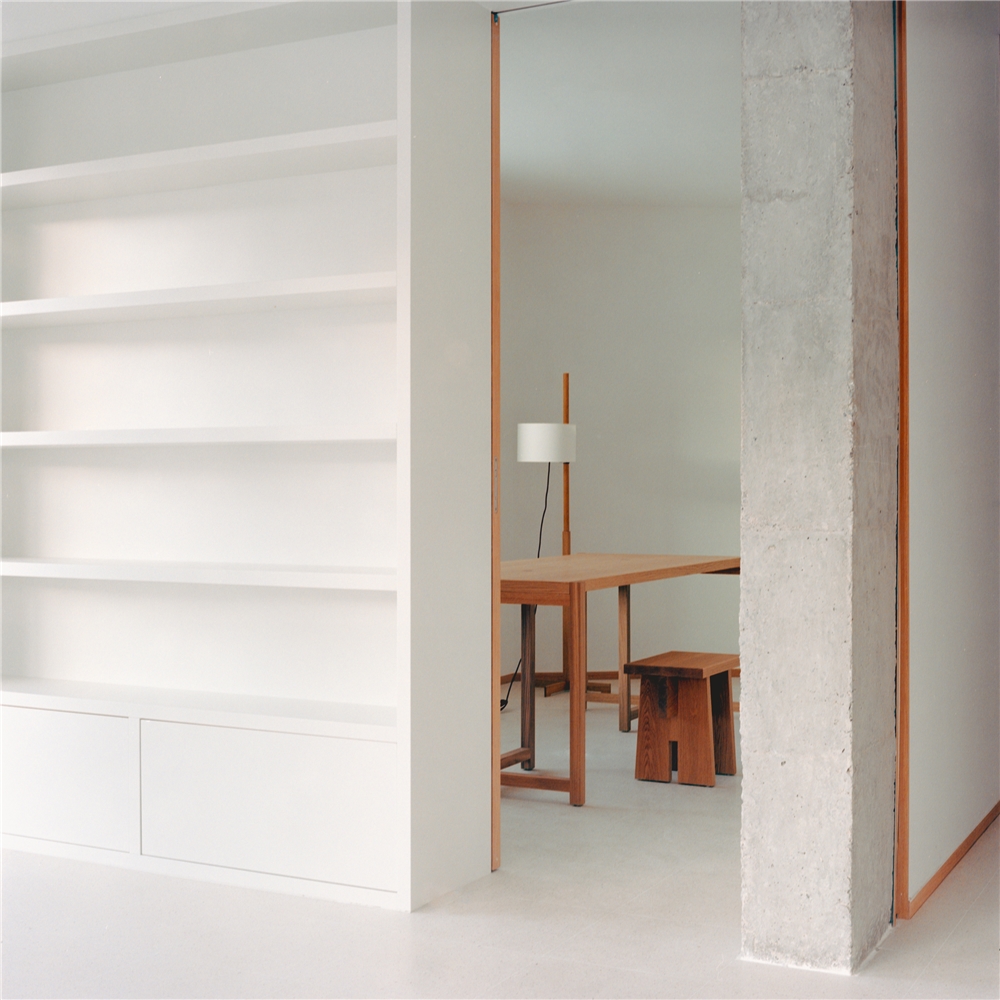 Los muros interiores adquieren un papel activo dentro del sistema espacial. Lejos de funcionar como simples elementos de separación, su espesor se aprovecha para alojar los servicios: estanterías, armarios, instalaciones, etc. Estas “paredes gruesas” son infraestructuras habitadas, que integran lo funcional en la propia construcción. Al hacerlo, liberan los espacios principales preservando su apertura y adaptabilidad. Esta estrategia encuentra resonancias históricas en las murallas y castillos medievales, donde el espesor del muro albergaba escaleras, almacenes y pasajes ocultos.