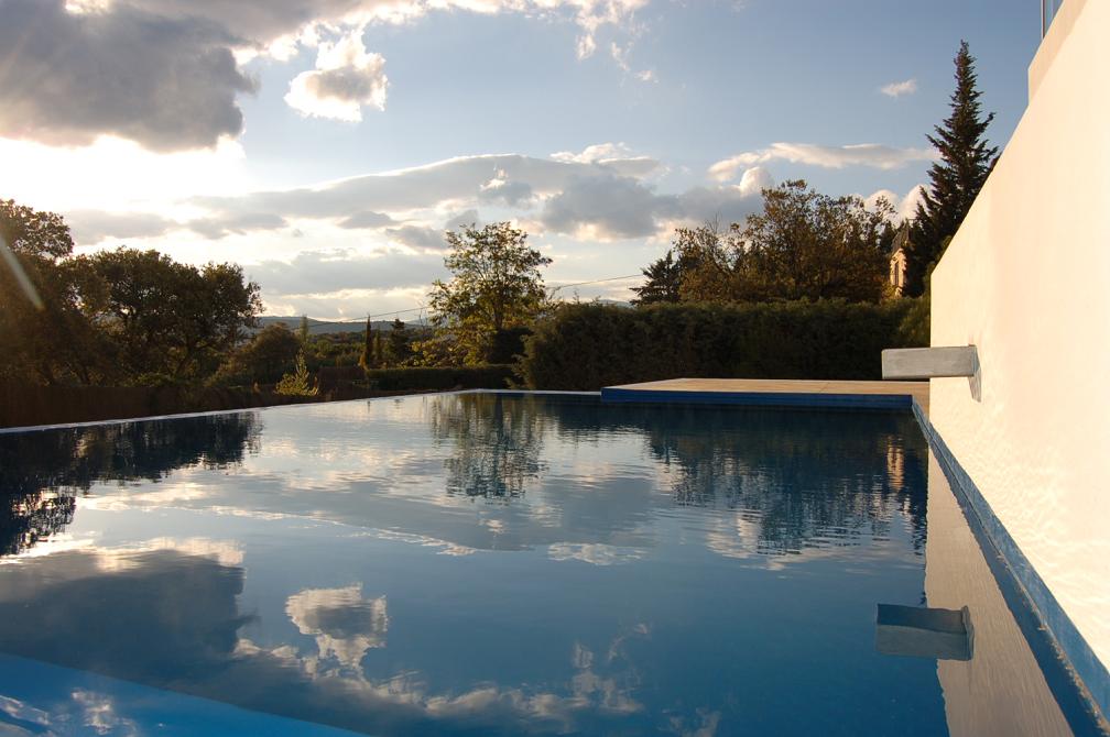 Los huecos están orientados al sur-suroeste, para captar el sol y disfrutar de las vistas, con doble "piel" textil: toldo exterior al vidrio y "estor" interior al vidrio, para poder controlar mejor el efecto invernadero y aprovechar bien esa energía, o en verano protegerse del sol. La casa prácticamente no tiene huecos a norte o son de reducido tamaño. Tiene 8 cm de espesor de aislante (placas de poliestireno extruido de densidad 30 kg/m3), una placa solar en cubierta para producción de agua caliente sanitaria, calefacción por suelo radiante, frío radiante para el verano (agua fría por esas mismas tuberías), carpintería de madera de iroko, que aisla mejor que el aluminio o el PVC, red separativa de evacuación (tres redes independientes: aguas fecales directas al alcantarillado, agua de lluvia a depósitos para riego y aguas grises de lavabos y duchas a depósitos para oxigenación y posterior riego). El plano de agua de la piscina desbordante refleja el paisaje circundante y las puestas de sol.
