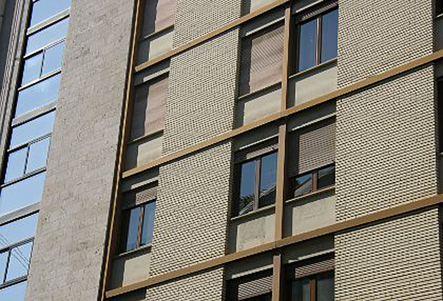 Heredero de una fundación de 1550 vinculada a la Universidad Literaria, ocupa una gran parcela trapezoidal junto a la Universidad, con siete plantas de altura y dos patios de luces interiores. En las fachadas exteriores despliega un lenguaje miesiano, dejando patente la retícula de la estructura metálica, entre la que dispone paños de ladrillo visto. La composición es tripartita, con un cuerpo basamental y un piso superior a modo de remate más acristalado que el resto; en los frentes mantiene la ordenación regular de las ventanas correspondientes a las habitaciones de los residentes. Frente a una cierta monotonía en el proyecto inicial, la ejecución final incluyó una serie de balcones sobre la entrada principal, también se enfatiza el acceso, ubicado en el encuentro con la medianera de la calle del Pintor Sorolla, mediante un aplacado/de piedra de composición vertical. El interior de la capilla, con iluminación cenital, combina madera y ladrillo resolviendo los encuentros entre planos de una manera muy particular, presente en otras obras del arquitecto. Destaca la colaboración del escultor Andreu Alfaro, quien diseñó la cerrajería de las puertas de acceso.