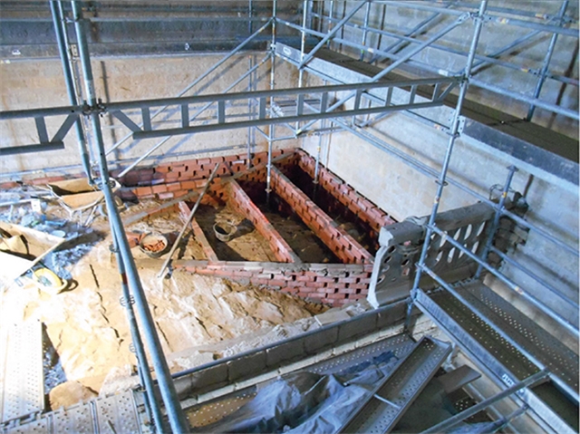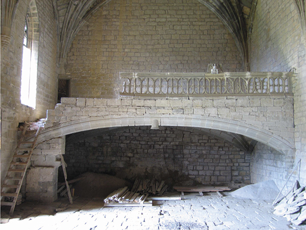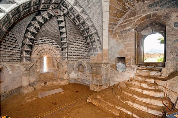 La segunda fase de obras, realizada en 2014, ha permitido la restauración del interior del templo y de la cripta. Se han limpiado y consolidado los muros y las bóvedas estrelladas de la nave del templo y de la sacristía, y las pinturas murales góticas de la cabecera y renacentistas de la cripta. También se ha repuesto y reparado el solado de piedra que conservaba el templo, la balaustrada gótica del coro alto para el que se ha const ruido una nueva escalera de acceso de madera, y se ha colocado una nueva vidriera en el ventanal gótico de la nave. Uno de los objetivos principales de la intervención ha sido la limpieza y consolidación de los restos de pintura mural gótica de la cabecera que han llegado hasta nuestros días, y de la grisalla renacentista de la cripta, cuya pinceladura se conservaba prácticamente integra.