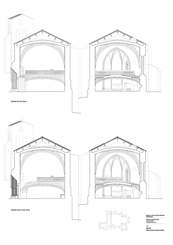 En definitiva, la restauración de la iglesia y cripta de San Salvador de Gallipienzo, como toda actuación sobre un edificio antiguo, ha pretendido mejorar su comprensión histórica, recuperar su valor arquitectónico, en los aspectos formales y constructivos, y adecuarlo para su uso, y todo ello sin renunciar a la contemporaneidad arquitectónica allí donde lo demandaba el edificio.