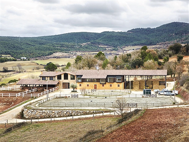 En una hípica situada en La Llacuna (Barcelona) se define una ampliación mediante una gran cubierta de tejas a dos aguas que se extiende hasta cubrir un pajar y un establo. La construcción de la ampliación sobre estas cuadras existentes y no en un solar cercano, como estaba previsto inicialmente, ha permitido ahorrar en cimientos, estructura y acometidas.