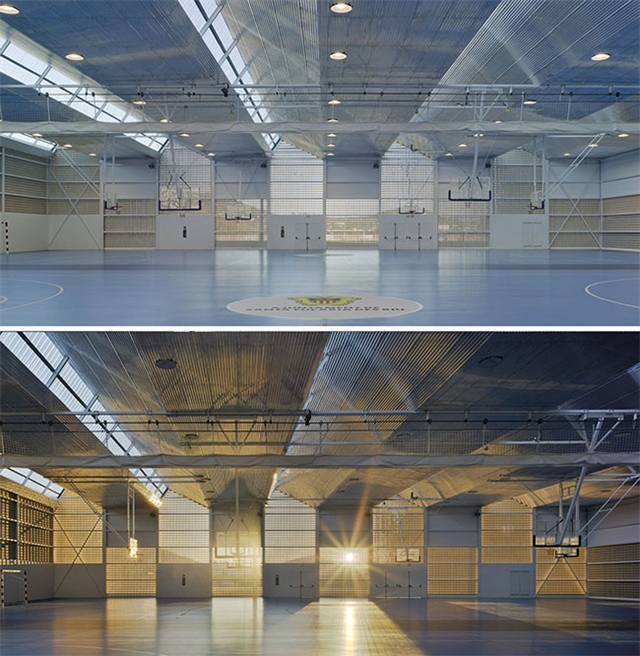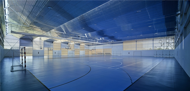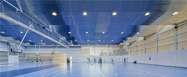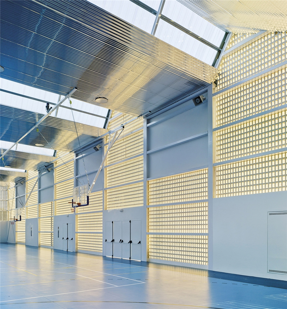 Valoración del jurado Hispalyt: La escala del edificio, como gran volumen polideportivo, parece propicia para perder la referencia de la escala humana. Con las decisiones tomadas (celosías cerámicas en combinación con otros materiales) se consigue el doble resultado de acercar la escala a la humana y a la urbana. Además, el tratamiento de la luz, con los diferentes efectos provocados por la iluminación solar, contribuye a crear un espacio deportivo con una especial relación entre interior y exterior.