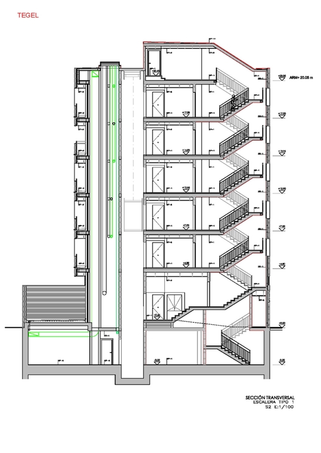 Las dimensiones del bloque son 58m de largo, 15 de profundidad, PB+5 y 20m de altura. En base a esta volumetría fijada en el planeamiento, nos parecía que debíamos re proporcionar la pieza.