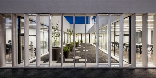 El edificio se ha diseñado para alojar la sede de una empresa una textil escandinava en España ubicada en Málaga. Conviven en el interior los lugares destinados a oficinas y a zonas comunes, organizadas “cual ágora” en un gran espacio central. Las transparencias de los cerramientos, presentes en todo el edificio, crean entornos abiertos y acogedores que fomentan la comunicación entre departamentos y personas.