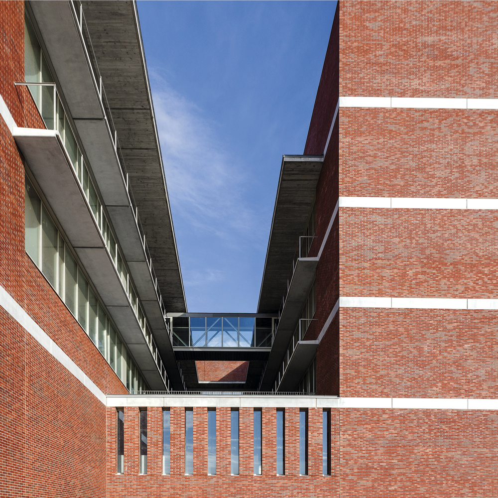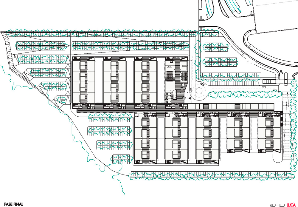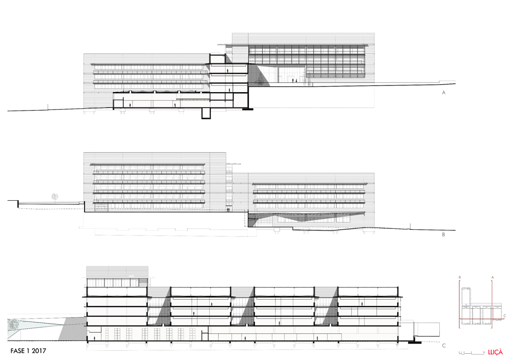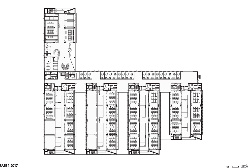 Este entramado de unidades modulares conectadas a la espina dorsal, que permite la circulación de personal a manera de “rambla” y el paso de instalaciones, facilita la construcción por fases.