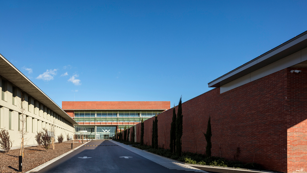 El edificio se organiza alrededor de un eje longitudinal norte-sur que, a manera de columna vertebral, religa y conecta las unidades modulares de producción que se disponen a lado y lado. Mientras las unidades situadas a poniente se enfrentan a los campos de cultivo y se abren a las mejores vistas, en el lado este acompañan a las edificaciones del polígono creando el acceso en este lado más construido, más “urbano” de la parcela.
