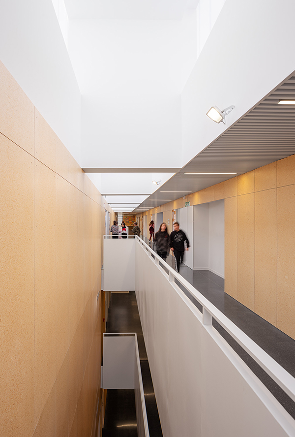 El modelo tipológico planteado es de carácter compacto con un pasillo central luminoso y generoso, con aulas a ambos lados. Un volumen económico, compacto, flexible y eficiente: