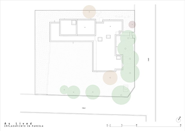 La vivienda ha de desarrollarse, prácticamente en su totalidad, en planta baja y en relación directa con el patio-jardín, situado al sur, a través de espacios exteriores cubiertos. De lo construido sobre el terreno sólo se eleva un pequeño volumen para albergar un espacio singular, una biblioteca-despacho que mira hacia el pinar.
