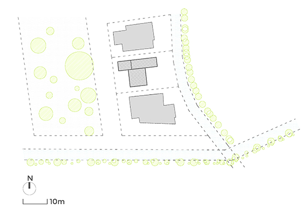 Por último, la vegetación del entorno, concebida como acompañante natural de la arquitectura y la tectónica. Aporta cada día los matices y enriquece la experiencia cuotidiana de vivir y sentir la casa.