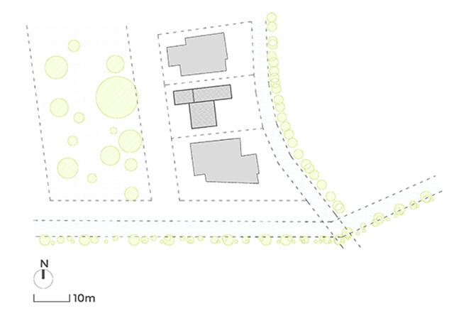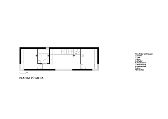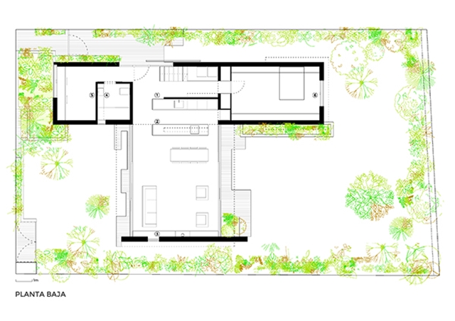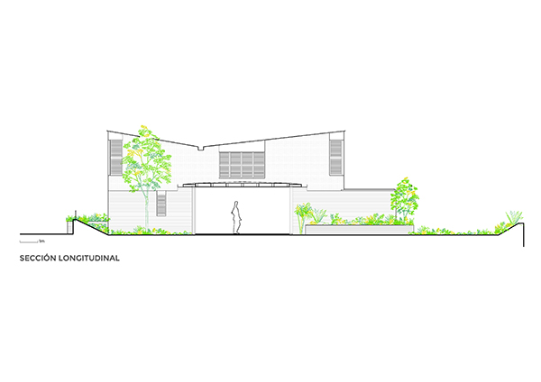 Una casa en medio del jardín, pensada para nuestra forma de vivir y sentir; con dos volúmenes diferenciados, uno más esbelto y cerrado, con los espacios de menor intensidad vital y el otro horizontal y transparente que actúa como el centro vital de la casa, como un gran porche, entre plantas y árboles. Se disfruta constantemente del paso de las estaciones del año, con una continua consciencia del tiempo, la lluvia, el sol y el viento… un espectáculo diario entorno el espacio central de la vivienda.