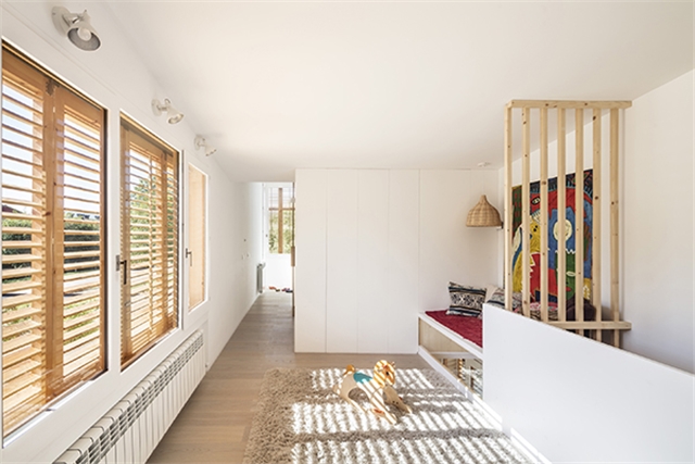 En épocas más calurosas la orientación de las ventanas asegura la ventilación natural cruzada, y mediante las lamas orientables de madera se regula y tamiza la luz y la radiación solar. En los ventanales de vidrio se ha instalado un sistema de “screen” exterior, que se complementa con cortinas.