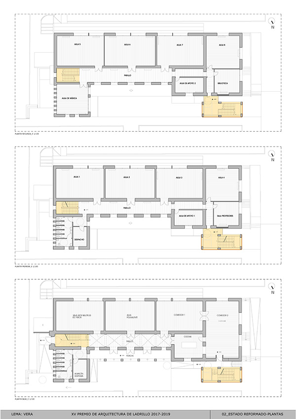 El proyecto tendrá dos áreas principales de intervención: la reorganización de la escalera existente, para que las tres plantas del colegio queden conectadas sin tener que salir del propio edificio; y la construcción de un núcleo de comunicación exterior que resuelva los problemas de evacuación del colegio en caso de incendio y permita, en una segunda fase, instalar un ascensor accesible.