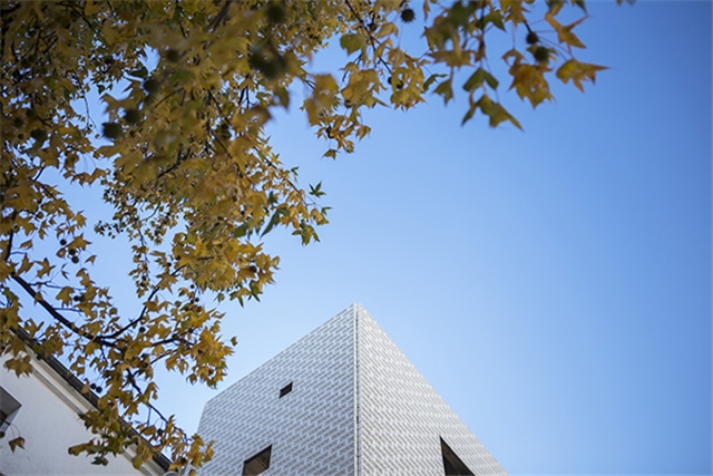 El nuevo volumen construido se configura por tanto como un edificio que explota la dualidad exterior-interior, sin llegar a definir en qué ámbito exactamente se halla el usuario. La piel cerámica tamiza la luz y define el ámbito donde nos encontramos, pero no es un elemento que delimite claramente un espacio interior y un exterior. Esta dualidad también se da en la elección de los materiales, donde ante la rotundidad de la estructura de hormigón armado aparece la ligereza de la celosía de ladrillo.