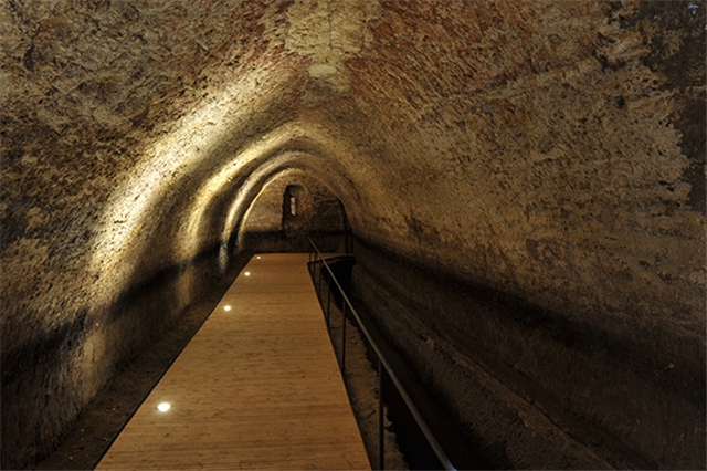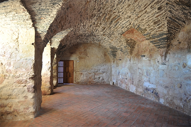 Desde este espacio, y a través de los cimientos correspondientes a la torre nordeste del convento, espacio mudo puntuado con la presencia de un solitario ciprés, se accede a la bodega que da paso a las galerías subterráneas que se encontraban rellenas con escombros y completamente anegadas.