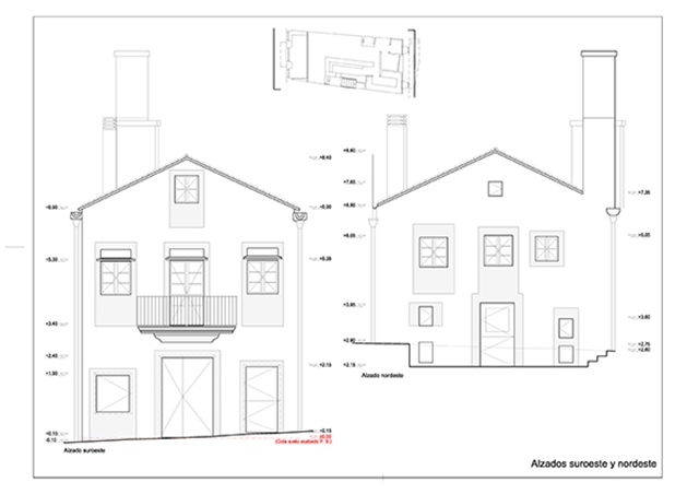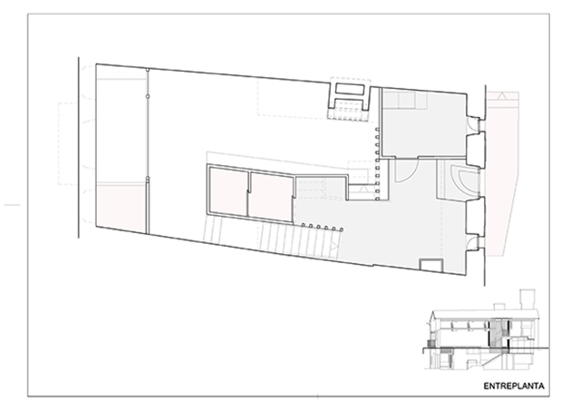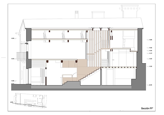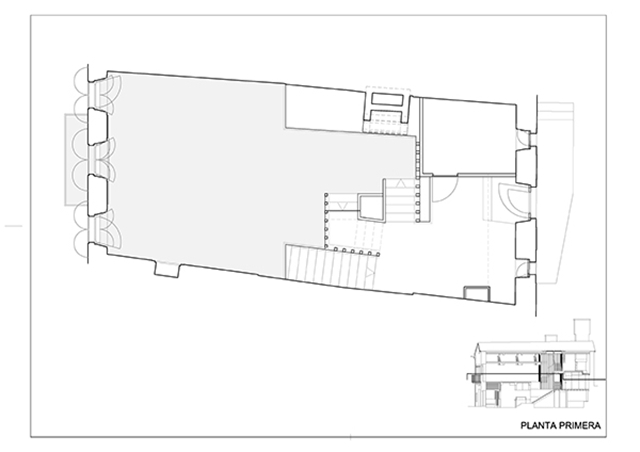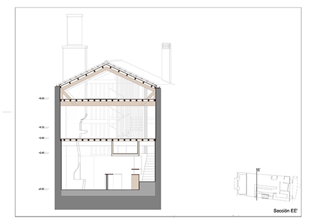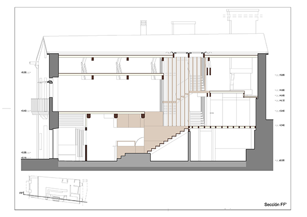 Se aprovecha la disposición de los diferentes desniveles interiores del piso que son consecuencia de la diferencia entre la rasante de las dos calles desde las que se accede al inmueble y quedan definidos por la posición de los diferentes elementos de cantería que forman parte de la construcción muraria. La rehabilitación contribuye a una relectura del edificio consecuente con la riqueza espacial que supone este desplazamiento y con la singularidad de los diferentes elementos patrimoniales.