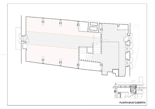 La nueva cubierta, visible desde parte de las edificaciones cercanas se resuelve ventilada con teja árabe cerámica clavada a un doble orden de rastreles fijado a una base de panel rígido de fibra de madera.