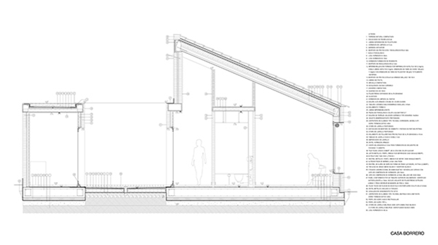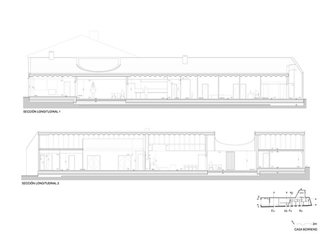 Se decide construir esta casa arquetípica con métodos tradicionales de construcción, crujías de muro de carga de ladrillo paralelas a la fachada, con la peculiaridad de aprovechar la gran profundidad de la parcela para hacer del testero largo la nueva fachada principal, de manera que construimos la casa en una planta, con una única crujía y a un agua a lo largo de esos 40 metros.