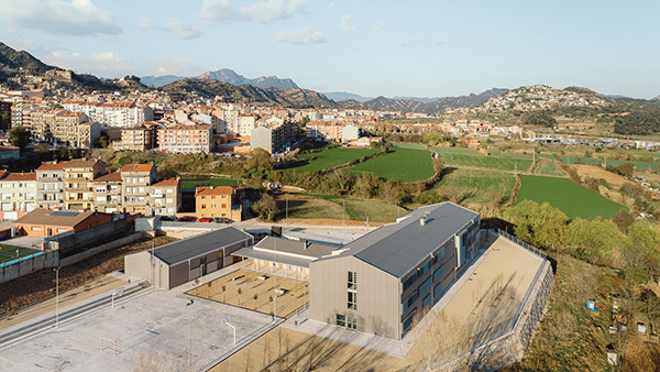 El proyecto de este Instituto de Enseñanza Secundaria situado en la localidad de Berga es el resultado de un concurso convocado por Infraestructuras de la Generalitat de Catalunya y el Departamento de Educación.