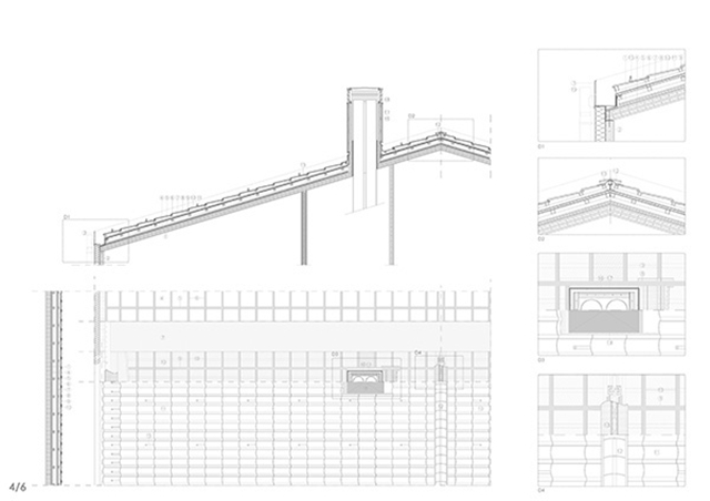 Los tres edificios se plantearon con grandes cubiertas a dos aguas de teja plana cerámica.
