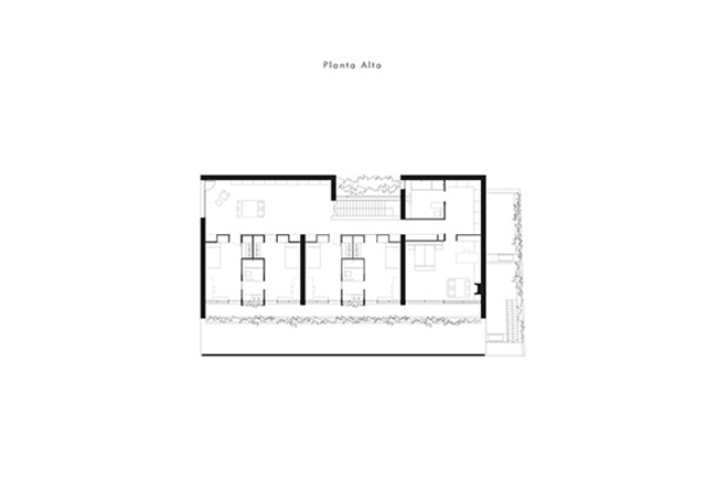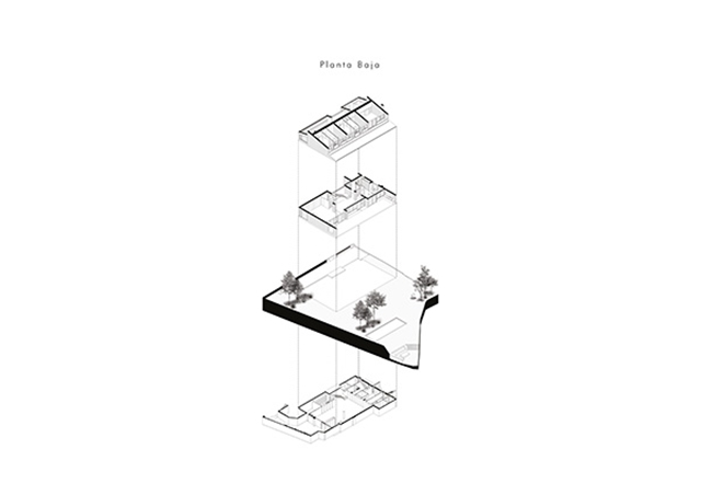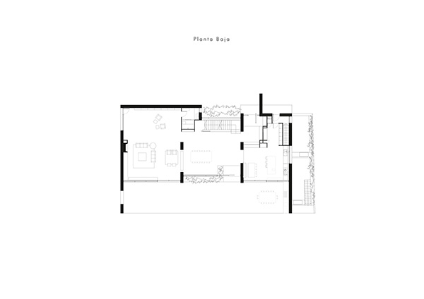 Los espacios de la casa son abiertos hacia el exterior. En la fachada, los muros perpendiculares y las jardineras cruzan los límites. Se crea una continuidad del interior hacia las áreas externas desdibujando los límites. En la fachada extendemos el voladizo para crear una sombra que regula la entrada de los rayos del sol en verano y también se diseña una claraboya en el interior de la casa como apoyo al sistema de ventilación natural.