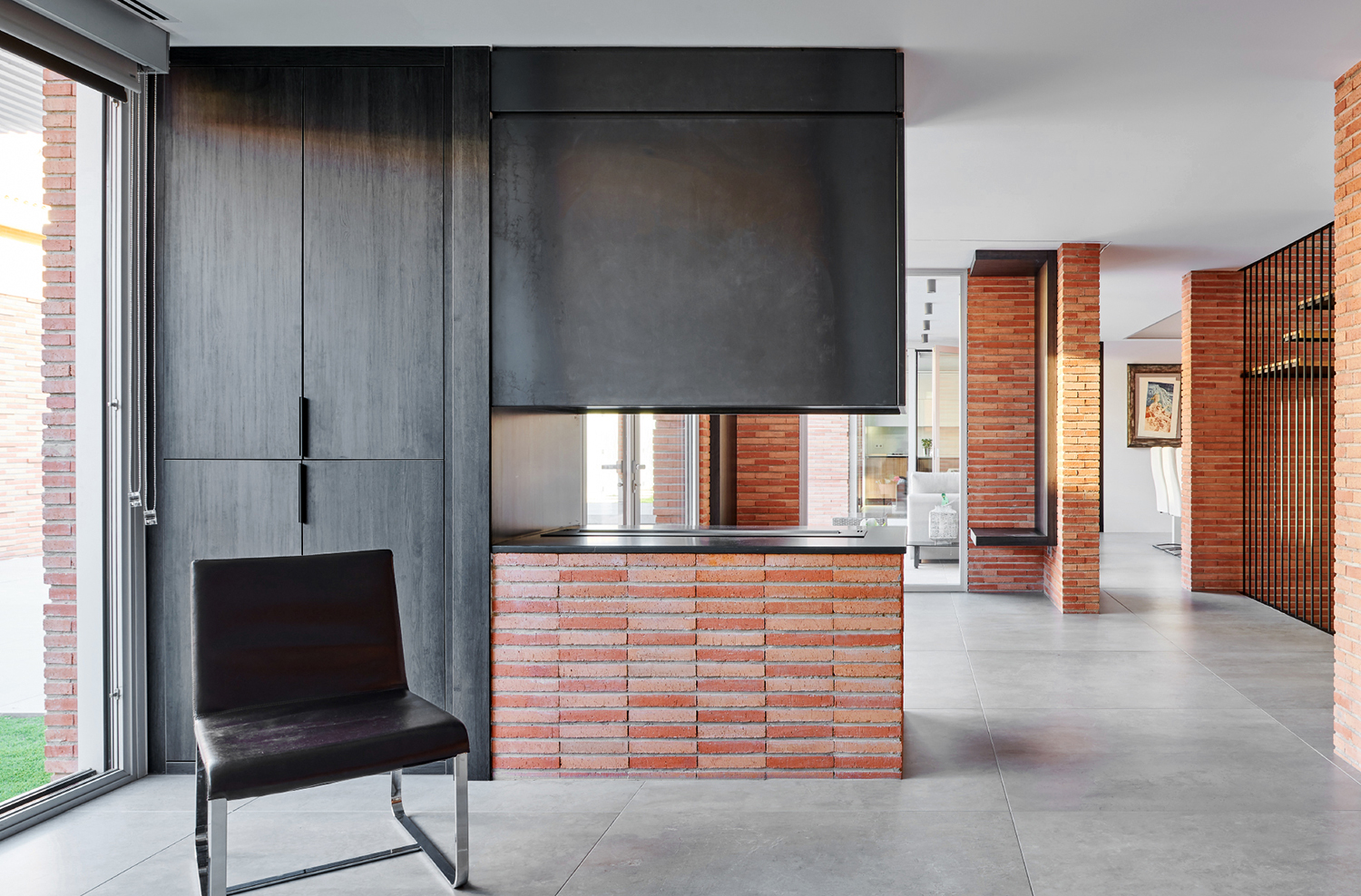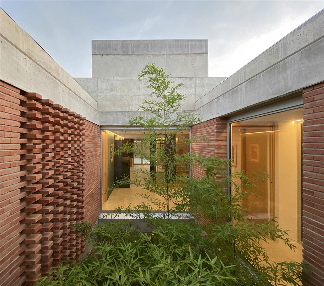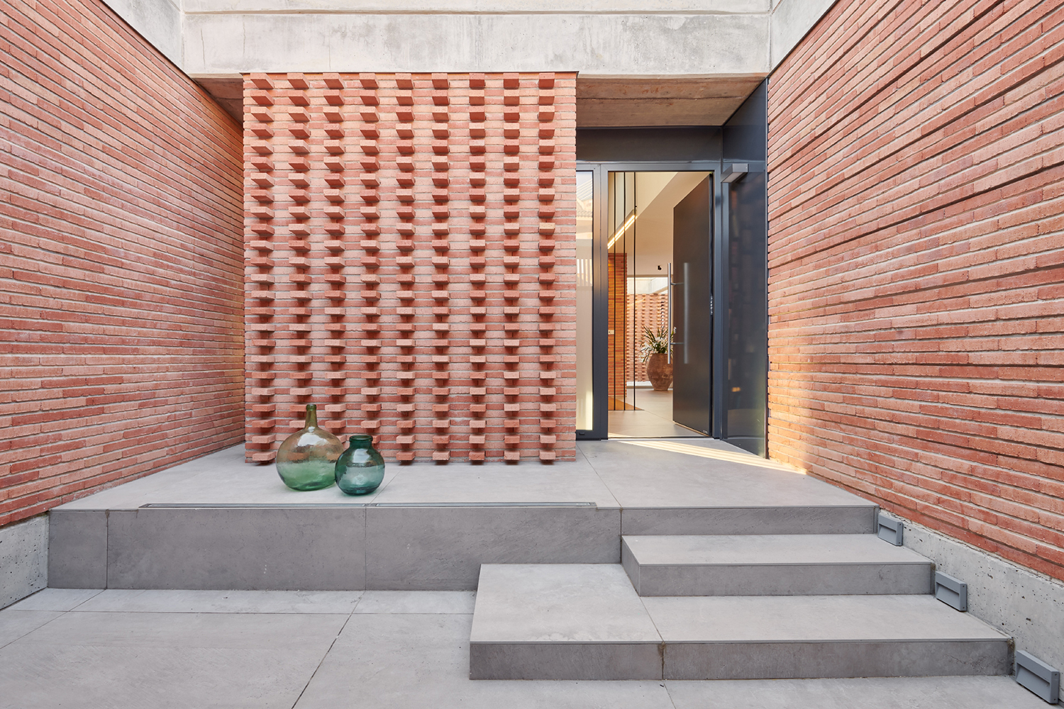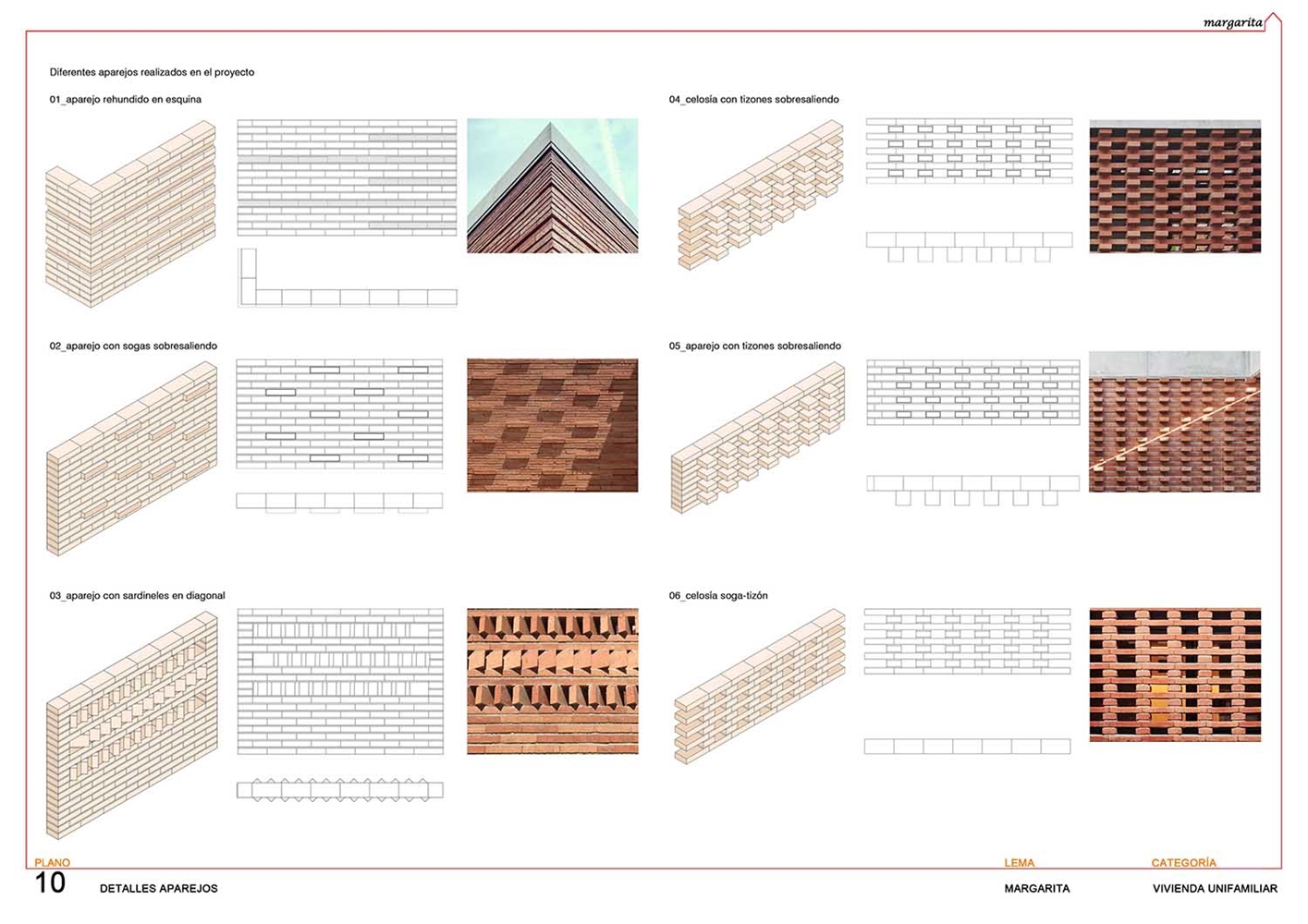 La dificultad de emplazar la vivienda en un anodino barrio de periferia construido exclusivamente en ladrillo, llevó a dar una respuesta en la que crear una vivienda introvertida, abierta hacia un interior cuajado de patios con muros de ladrillo que se vinculan con el inhóspito entorno pero que a su vez se diferencian de él en virtud de la disposición y materialidad de los aparejos realizados.