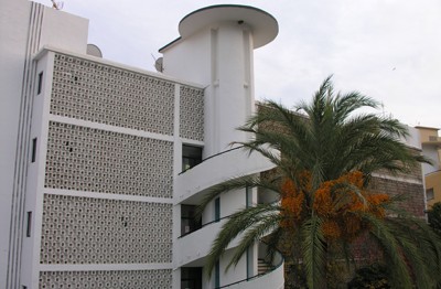El edificio se sitúa en la franja del litoral más oriental del término municipal y consolidado de Fuengirola, en la zona conocida como Carvajal. Su ubicación entre la playa, por la parte delantera, y la antigua carretera CN-340 con cierto movimiento topográfico, por la parte trasera, se resuelve con la introducción de un bloque lineal de apartamentos, con fachadas compositivamente bien distintas hacia ambos lados, formando un volumen único, sencillo, pero cuidado en detalles, del que destaca como elemento singular de la fachada posterior la expresionista escalera abierta de planta circular con forma de helicoide y su remate igualmente circular de casetón, en claro contraste con la malla tupida que organiza la delicada celosía prefabricada que protege las galerías de acceso a los apartamentos. La fachada principal responde a una cuadrícula que dibujan las líneas horizontales de los forjados y las separaciones verticales de los apartamentos, dejando totalmente acristalado el único hueco, retranqueado del plano de fachada tras una terraza, para posibilitar la relación con el mar y otorgarle protección solar. Esta ejecución definitiva de los apartamentos no coincide con el proyecto original de Andrés Escassi por lo que se puede suponer que la intervención del promotor Otto Piwko tuvo que ser muy determinante. Aún así, este edificio contribuye con su aportación a la definición de un tipo muy específico de apartamento turístico (con acceso por galería y en relación directa con las vistas hacia el mar), adaptando, cualificando y llenando de sutilezas una tipología moderna en un momento en que el turismo toma auge en la Costa del Sol.