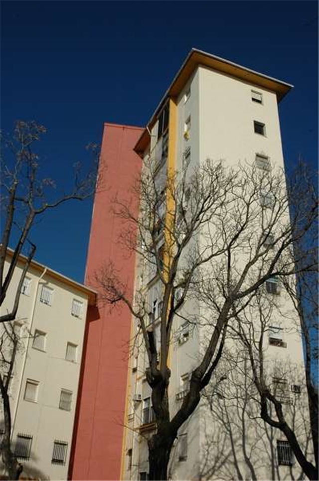 El conjunto residencial Virgen del Carmen se encuentra situado en el borde más occidental de la ciudad de Sevilla, junto a la ribera del Guadalquivir. Fue promovido por el Instituto Nacional de la Vivienda y construido entre 1955 y 1956, según proyecto del arquitecto Luis Recasens- Méndez Queipo de Llano, y cuenta con un total de 596 viviendas con unas superficies tipo de entre 56, 65 y 90 m2. Compuesto por cincuenta y dos bloques, de nueve y cuatro plantas, se ordena ajustándose a las condiciones de parcela, con una superficie de 3,67 hectáreas. Así, los bloques de mayor altura, agrupados dos a dos, se disponen en los bordes Norte y occidental del solar, dando frente a la escala territorial, abriéndose al Aljarafe y hacia el vecino barrio de El Tardón. Los cuarenta y dos bloques bajos se sitúan en el interior de la parcela, agrupándose linealmente en dirección norte-sur, y organizando, a partir de un sencillo esquema de segregación de viario rodado y recorridos peatonales, recintos con inspiración en los antiguos corrales de vecinos de Triana. Los bloques elevados presentan una planta adaptada del bloque en H, con dos alas curvas: la exterior, de nueve plantas, y la interior más baja, de cuatro plantas de altura, que continúa la escala de los bloques bajos interiores. El punto medio de la H lo compone la caja de escaleras, que reparte cuatro viviendas por nivel en las cuatro primeras plantas y dos a partir de la cuarta planta. El resto de bloques, unidos en sus lados cortos y dispuestos de manera seriada, son sencillas piezas de doble crujía con un núcleo central que da acceso a dos viviendas por planta. Esta intervención antecede y pone a prueba la reflexión tipológica que repetirá en una de las obras más significativas del mismo autor, el Conjunto Residencial de los Diez Mandamientos. El estado de conservación del conjunto es bueno.